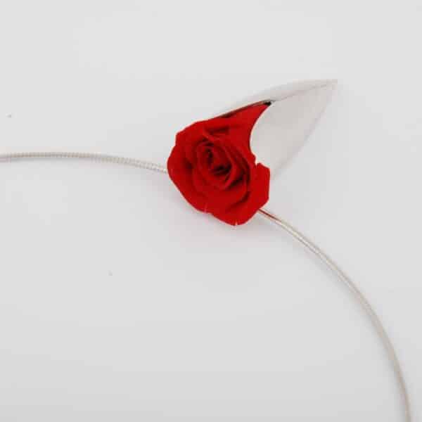 Le collier modèle Tulipe avec une rose rouge éternelle marie la délicatesse de la tulipe à la beauté ardente d'une rose rouge.Le collier Tulipe en argent massif s'enlace autour de la rose, créant une composition florale délicate. La rose, d'un rouge profond et vibrant, symbolise l'amour passionné et l'intensité des émotions. La tulipe, quant à elle, représente l'épanouissement et la promesse d'un amour qui grandit et s'épanouit avec le temps.Porter ce collier, c'est avoir un bijou botanique qui raconte une histoire d'amour. Chaque fois que vous le porterez, vous emporterez avec vous la symbolique puissante de l'amour et de la vitalité de la nature.Chaîne en argent 925/1000 rhodié fine et arrondie de 45 cm environ. Pendentif de longueur 3 cm en argent rhodié. Modèle déposé